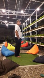 Konsep kafenya memadukan gaya hidup modern yang sehat. Kita bisa minum kopi sembari menikmati kebun hidroponik yang segar di sekeliling. Selada hijau dan merah tampak menyembul di sepanjang paralon hiroponik. Bunga-bunga gantung tak lupa juga saling memamerkan kecantikannya. Sepertinya kafe ini ingin mengedukasi masyarakat tentang pentingnya hidup sehat. Tak lupa juga mengingatkan kita pun bisa berkebun meski di lahan yang sempit.